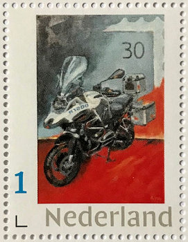 In de vorige Nieuwsbrief schreef ik over de mogelijkheden van vóór 2010 om in Nederland persoonlijke postzegels en tabs te maken. In dat overzicht stond ook het vierkante blauwe kader met frankeerwaarde 44 eurocent, met daarbij de opmerking dat er van deze variant bij ons geen zegel met motorfiets afbeelding bekend is.