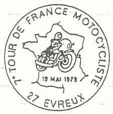 Naast de Tour de France voor wielrenners worden er ook nog vele andere Toeren de Frances gehouden. Zo is er een Tour voor skeelers, auto’s, paarden, Solexen en natuurlijk ook voor motorfietsen. In 1979 werden we verblijd met een herinnerings stempel voor deze rondrit:
