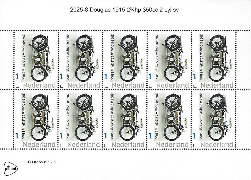 Douglas 1915 Zegel met afbeelding van een Douglas 2 3/4 pk met 350cc uit 1915.