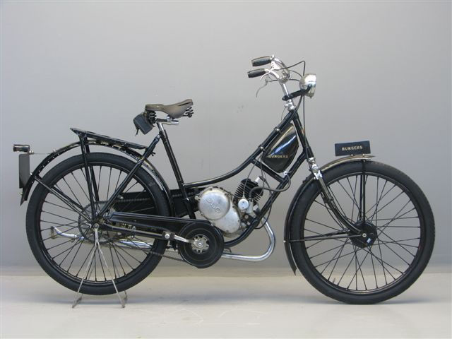 Burgers 100cc 1934 Zegel met afbeelding van een Burgers met 100cc JLO motor uit 1934. De motor is een uitvoering met laag frame, bedoeld voor dames en geestelijken.