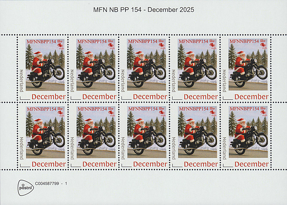 MFNNBPPZ (NB 154) Zegel met foto van een kerstman die een wheelie maakt op een klassieke BMW boxer.
